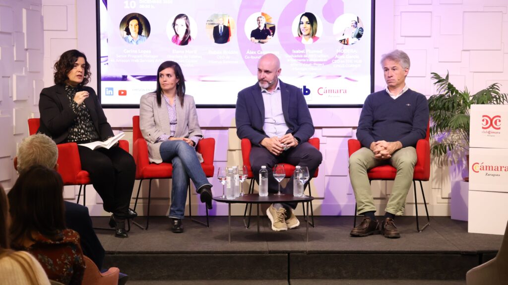 El mercado laboral vive un cambio profundo y acelerado: la inteligencia artificial, la automatización y el cloud están transformando qué tareas realizan las personas y qué espera una empresa de un perfil junior. Este fue el eje central de la mesa organizada por la Cámara de Comercio de Zaragoza dentro del Canal Expositivo, moderada por Álex García, CEO de Kings Corner, con la participación de Carina Lopes (AWS), Elena Martí (Tecnara), Rubén Roldón (Hiberus), Álex Casanovas (Apser) y Isabel Plumed, graduada del programa AWS Re-Start que hoy trabaja en el sector tecnológico, en Hiberus.